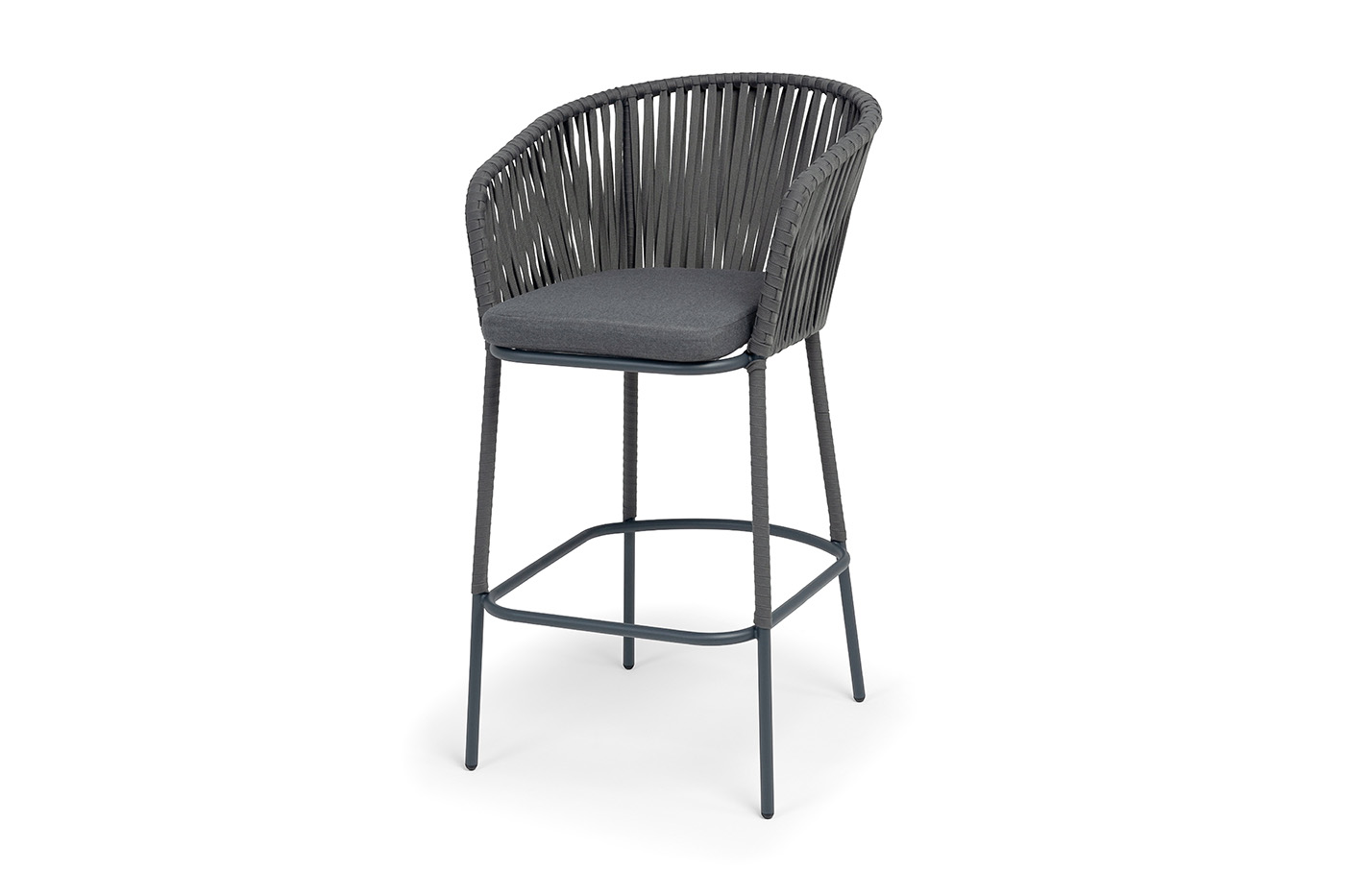4SiS "Бордо" стул барный плетеный из роупа, каркас из стали темно-серый (RAL7024) муар, роуп серый 15мм, ткань темно-серая 027 NEW