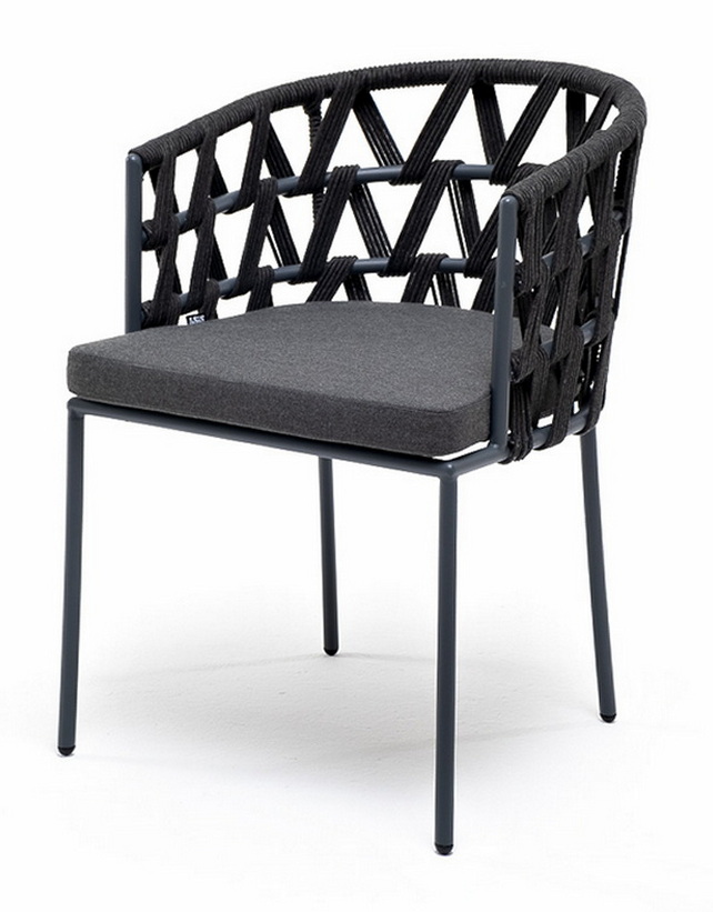 4SiS "Диего" стул плетеный из роупа, каркас из стали серый (RAL7022) муар, роуп серый круглый, ткань темно-серая 027