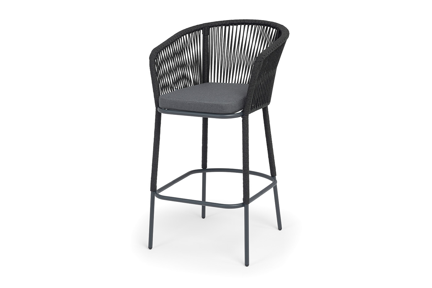 4SiS "Марсель" стул барный плетеный из роупа, каркас из стали темно-серый (RAL7024) муар, роуп темно-серый круглый, ткань темно-серая 027 NEW