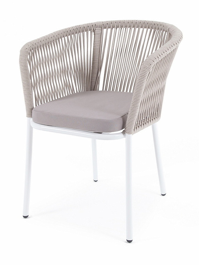 4SiS "Марсель" стул плетеный из роупа, каркас алюминий светло-серый (RAL7035) муар, роуп бежевый круглый, ткань бежевая 15052