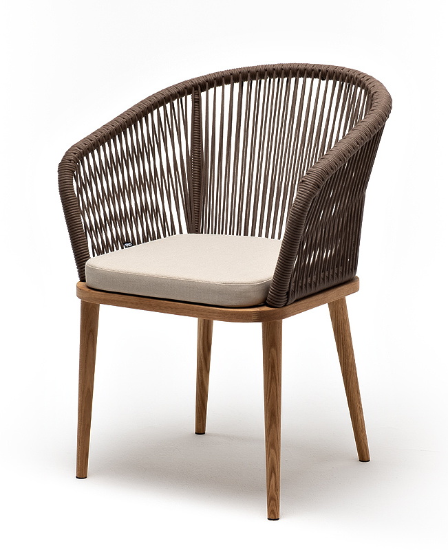 4SiS "Марсель" стул плетеный из роупа, основание дуб, роуп коричневый круглый, ткань бежевая 15052
