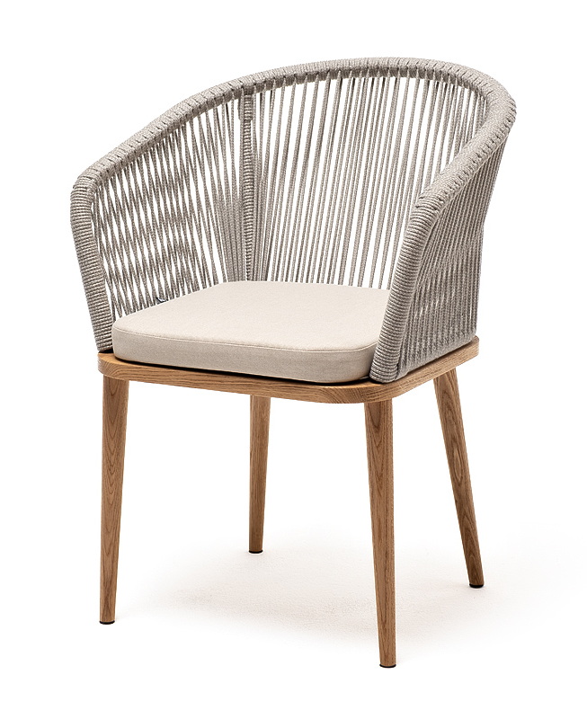 4SiS "Марсель" стул плетеный из роупа, основание дуб, роуп серый меланж круглый, ткань бежевая 15052