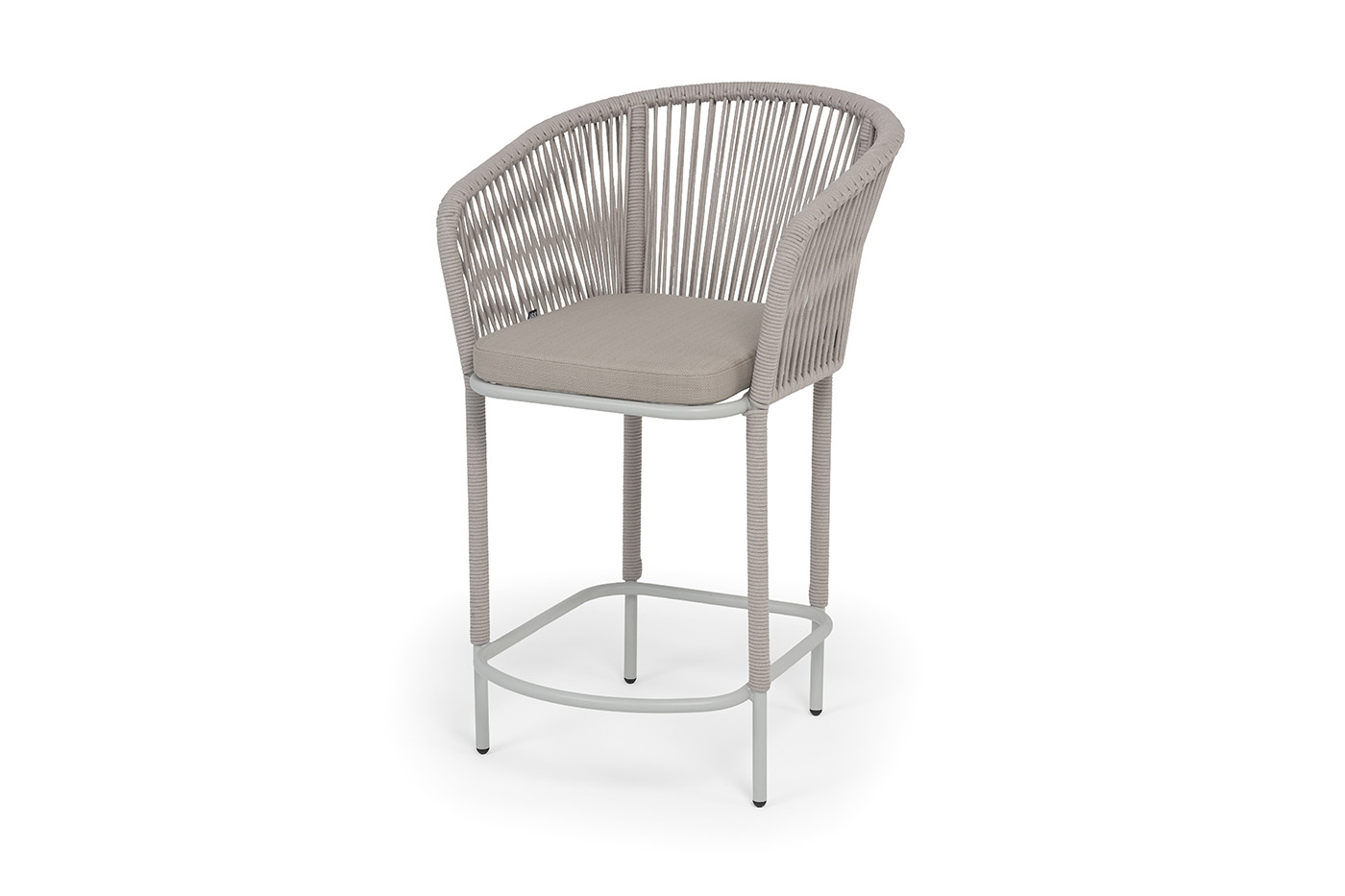 4SiS "Марсель" стул полубарный плетеный из роупа, каркас из стали светло-серый (RAL7035) муар, роуп бежевый круглый, ткань Mossle бежевая, пос.H65
