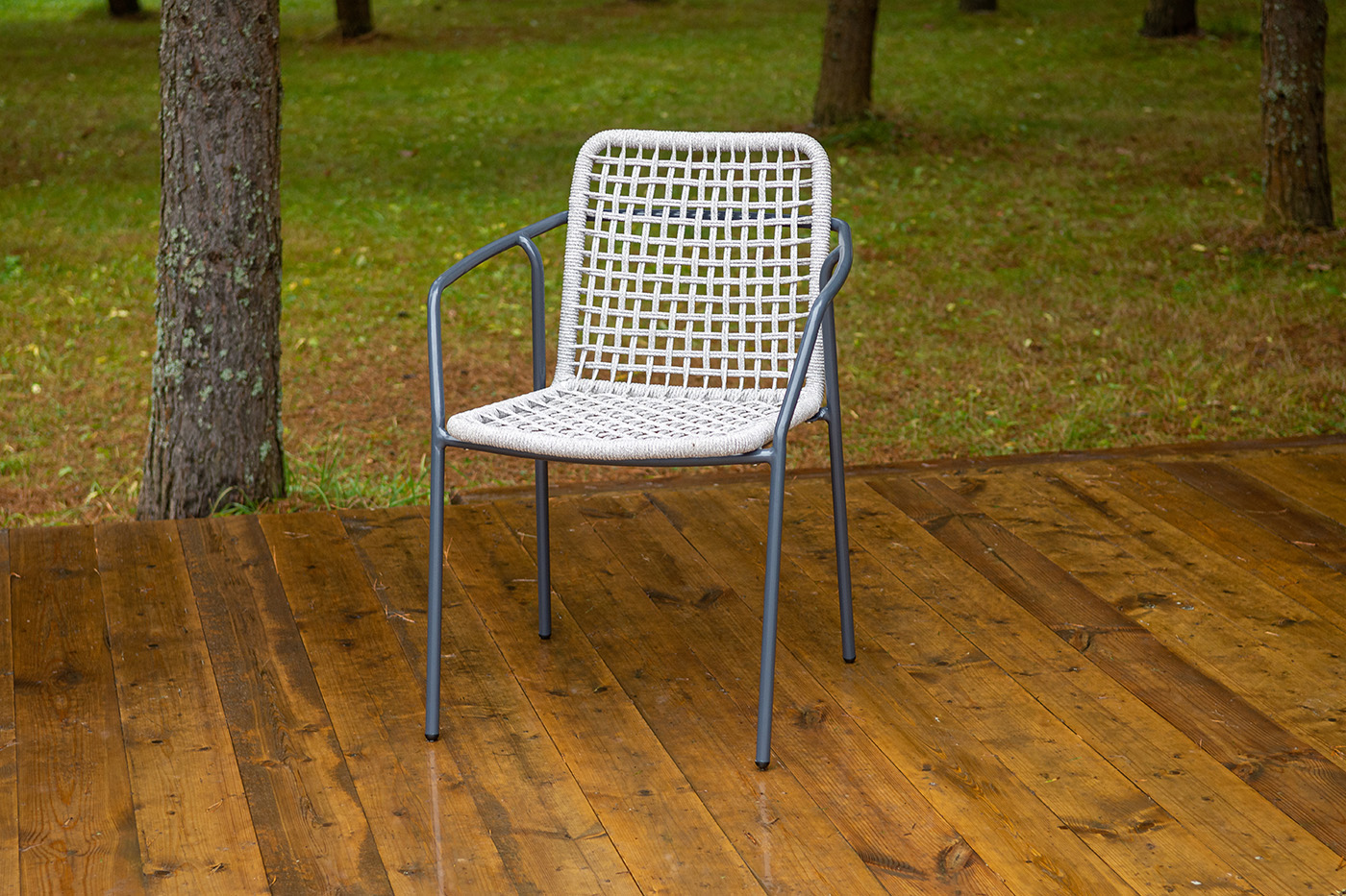 4SiS "Тунис" стул плетеный из роупа, каркас алюминий темно-серый (RAL7024), роуп светло-серый