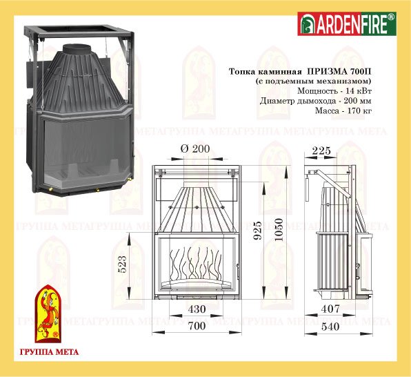 Инструкции, чертежи, документы - Каминная чугунная топка Мета Призма 700 П