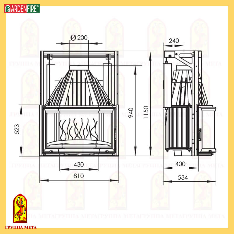 - Диаметр дымохода, мм 200