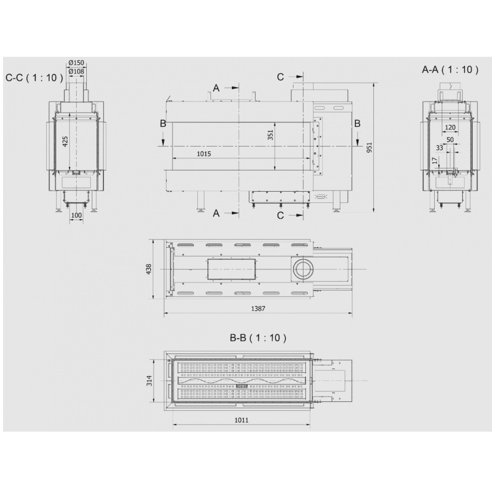 - Диаметр дымохода, мм 150
