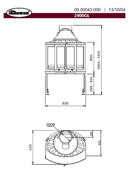 - Диаметр дымохода, мм 200