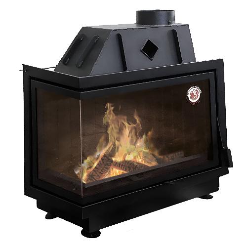 Каминная топка ЭкоКамин Альфа 800B L/R два стекла с черным шамотом (футеровка черным шамотом, стекло слева)
