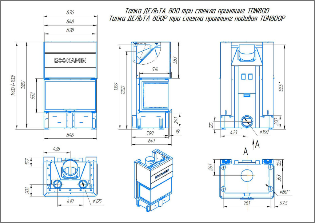 Инструкции, чертежи, документы - Каминная топка ЭкоКамин Дельта 800 P три стекла принтинг подовое горение
