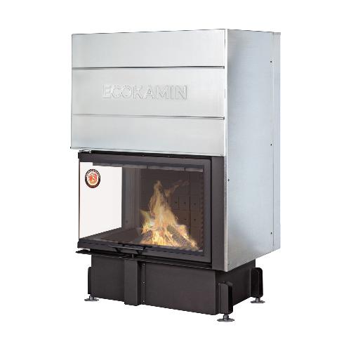 Каминная топка ЭкоКамин Дельта 800B два стекла черный шамот принтинг (стекло слева)