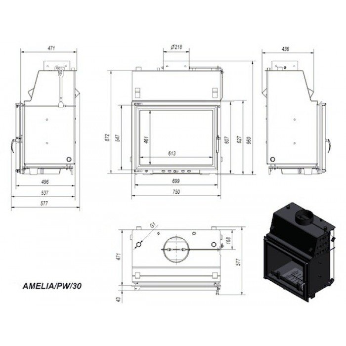 Инструкции, чертежи, документы - Каминная топка Kratki Amelia/PW/30/W