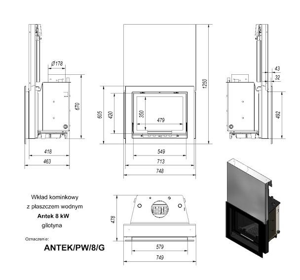 Инструкции, чертежи, документы - Каминная топка Kratki Antek/PW/8/G/W (гильотина)