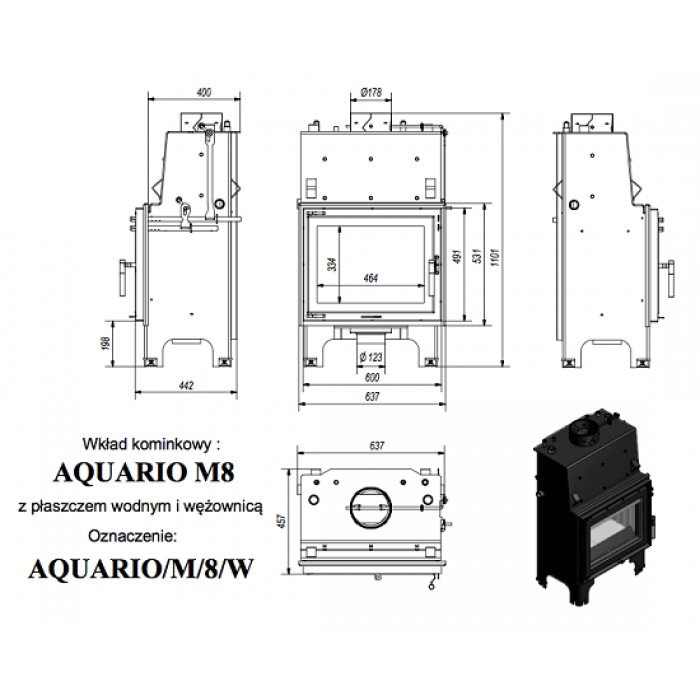 Инструкции, чертежи, документы - Каминная топка Kratki Aquario/M/8/PW/W