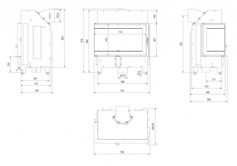 Инструкции, чертежи, документы - Каминная топка Kratki Ildnord Malmo (угловое стекло справа/слева)