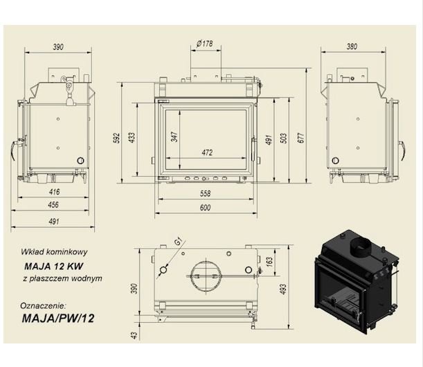 Инструкции, чертежи, документы - Каминная топка Kratki Maja/PW/12W