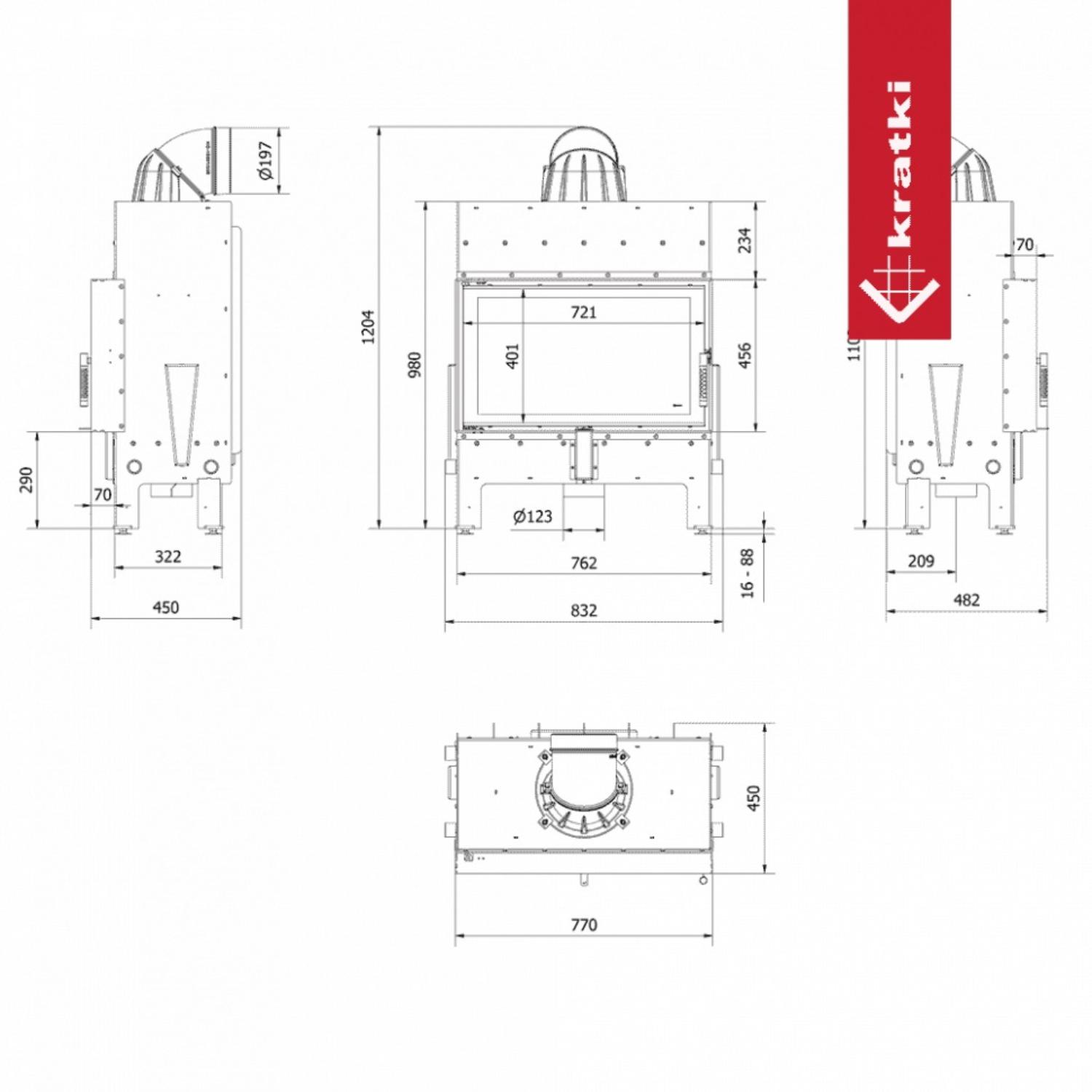 Инструкции, чертежи, документы - Каминная топка Kratki Pro Floki/M с доводчиком