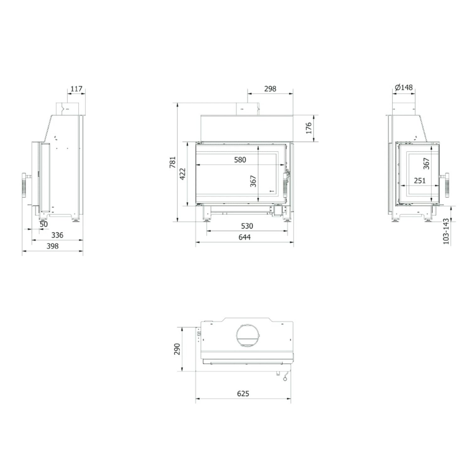 Инструкции, чертежи, документы - Каминная топка Kratki Simple S/BS (угловое стекло)