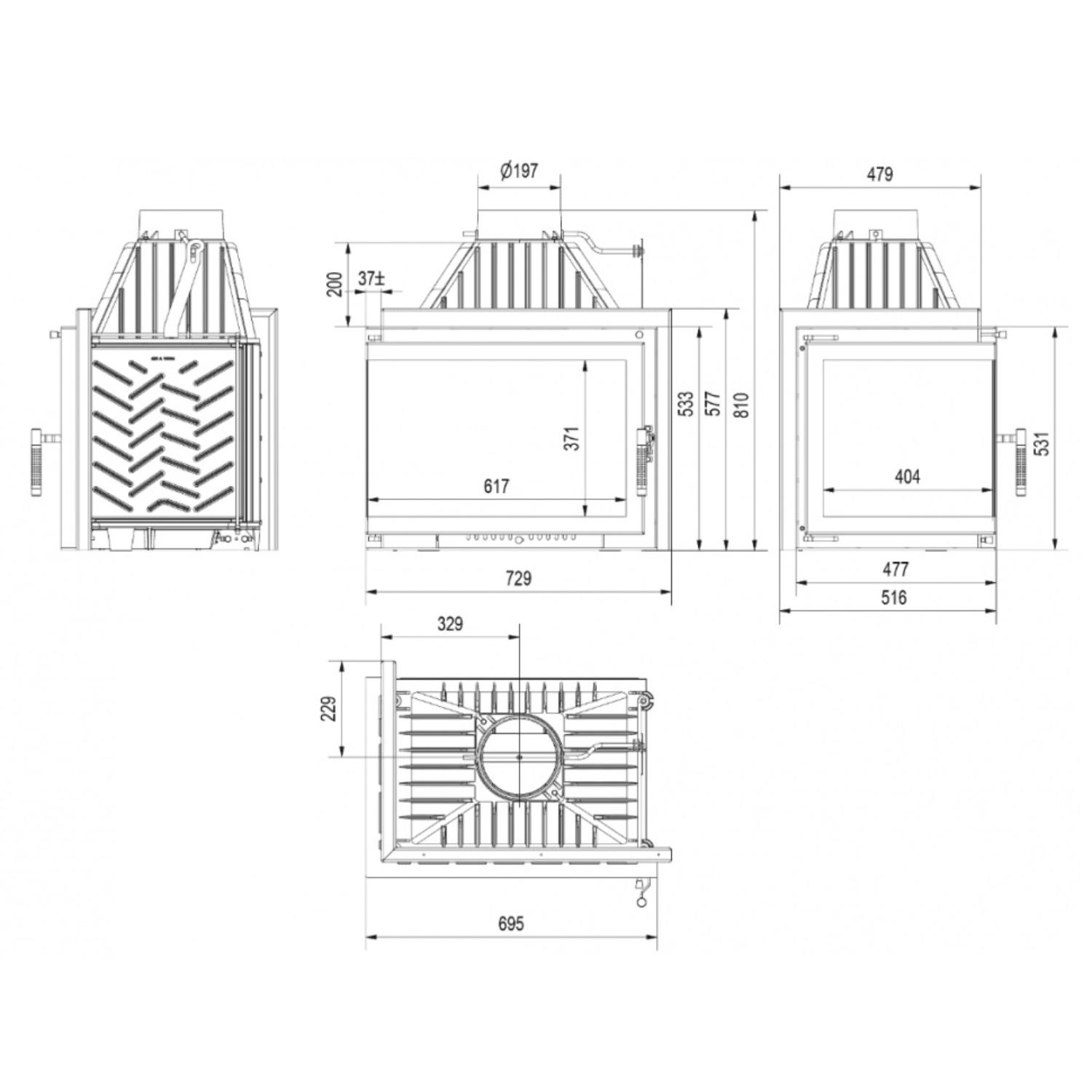 Каминная топка Kratki Simple/Z/S/BS (угловое стекло) (стекло слева)