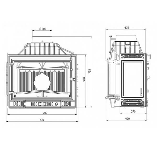 Еще одной отличительной особенностью каминных топок Kawmet является наличие встроенной шиберной заслонки с блокиратором дверцы.