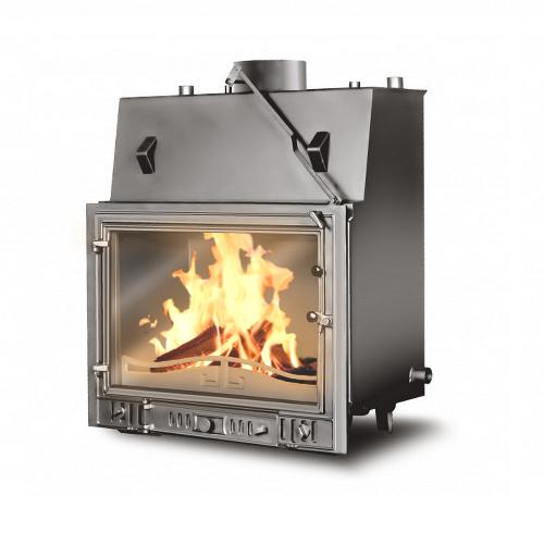 Еще одной отличительной особенностью каминных топок Kawmet является наличие встроенной шиберной заслонки с блокиратором дверцы.